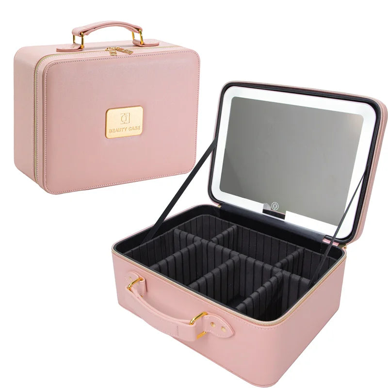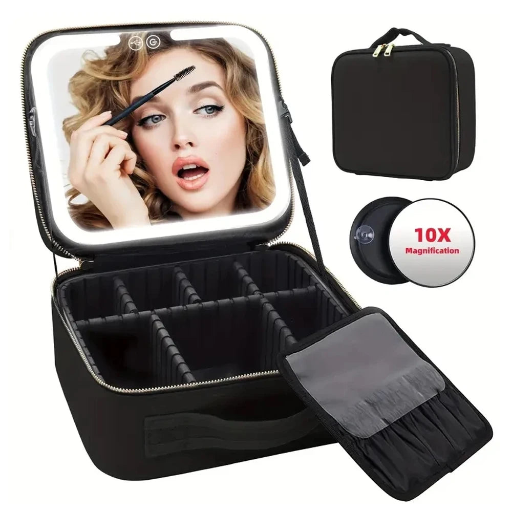 Travel Makeup Bag with LED Make up Case with Vanity Mirror 3 Color Setting Cosmetic Box Organizer for Beauty Tools Accessories