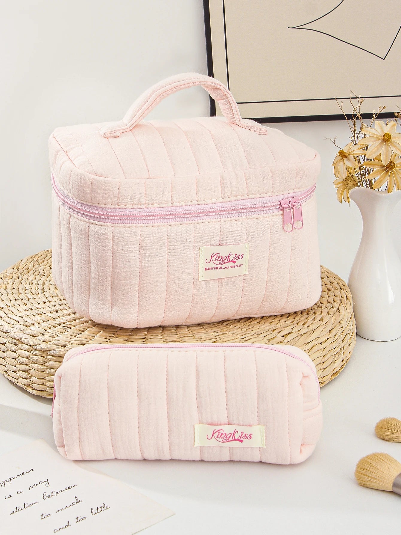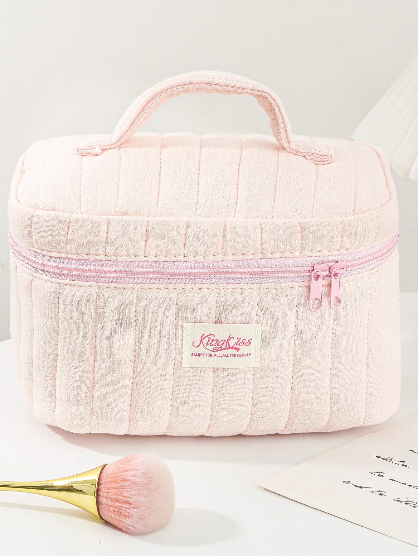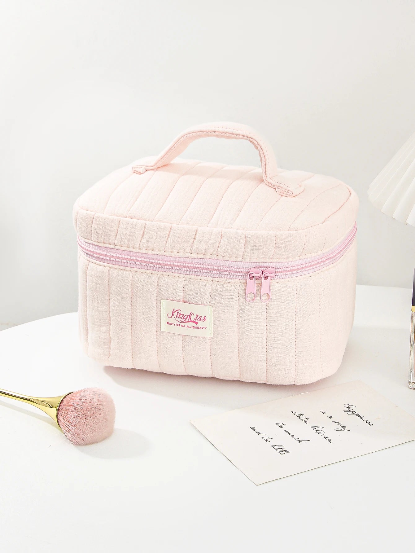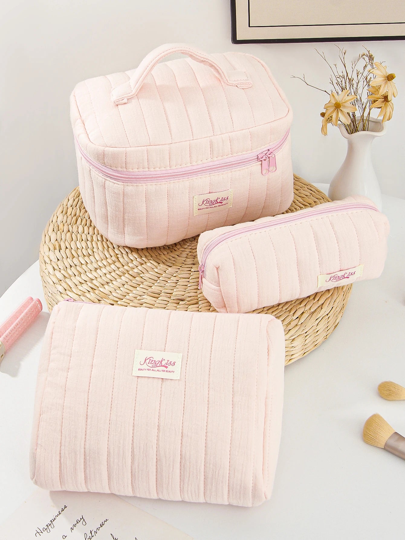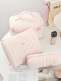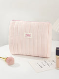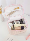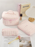 1pc/set pink quilted makeup bag, multifunctional makeup bag, handheld makeup bag, portable makeup bag set with zipper