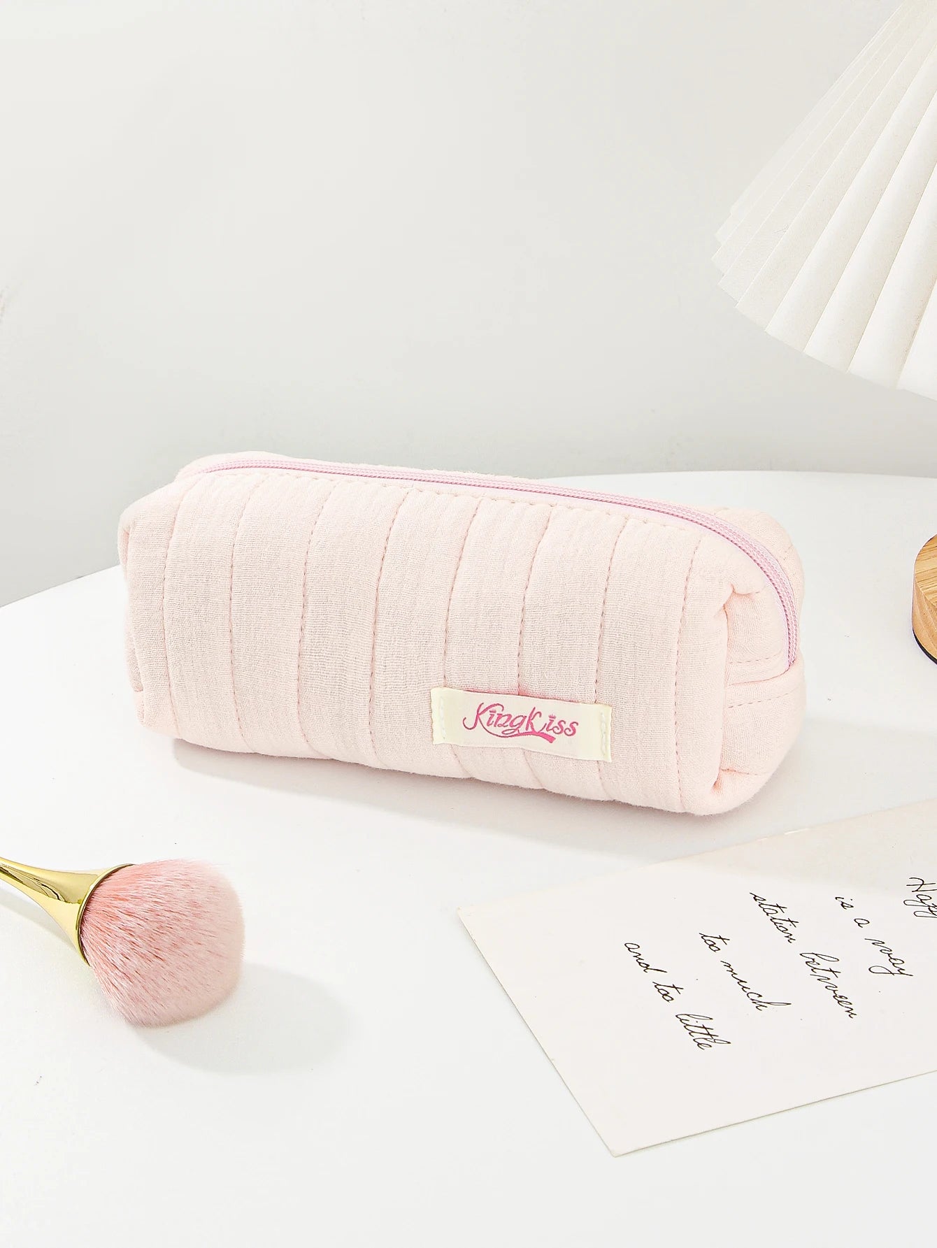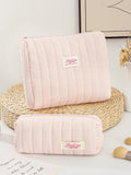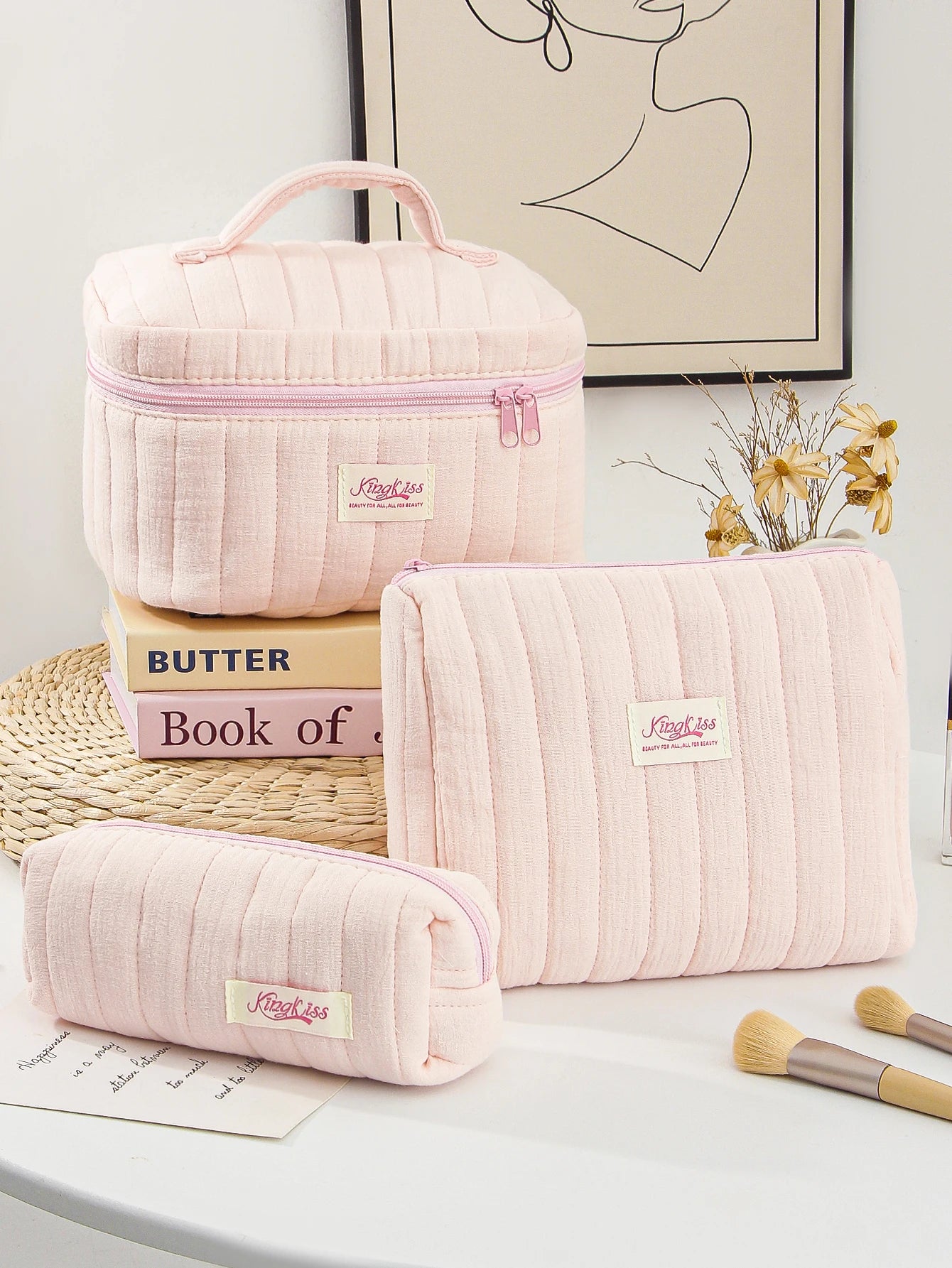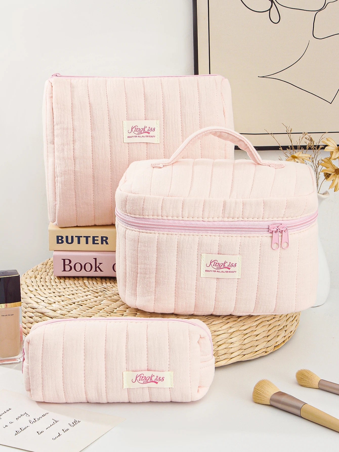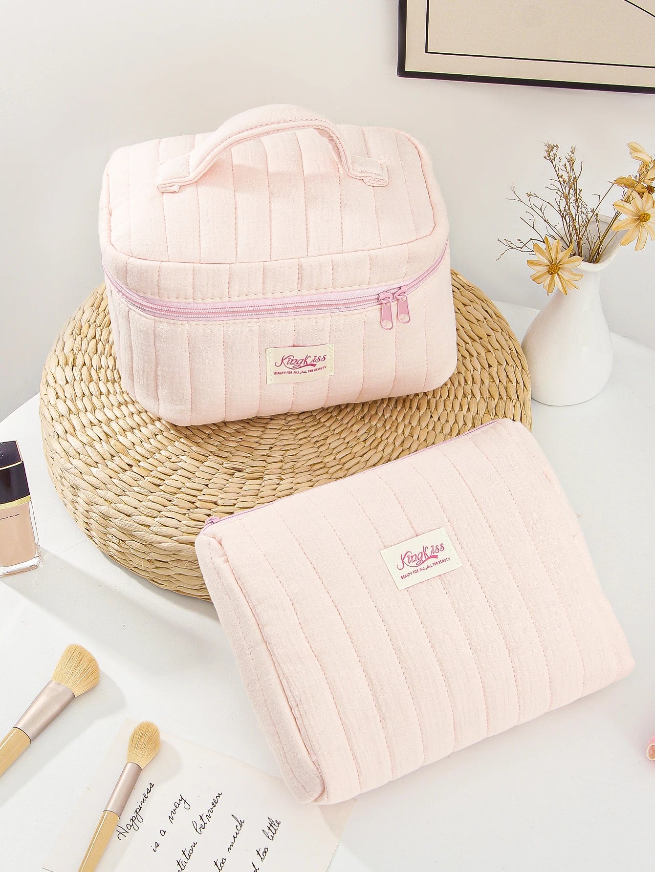 1pc/set pink quilted makeup bag, multifunctional makeup bag, handheld makeup bag, portable makeup bag set with zipper