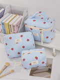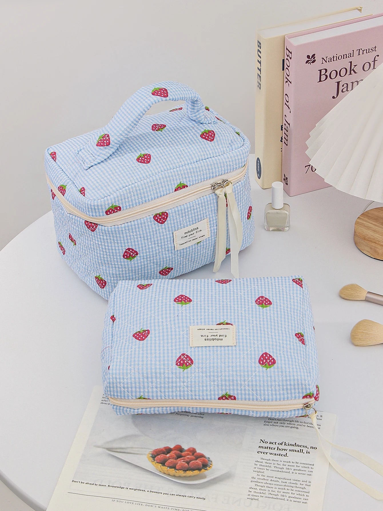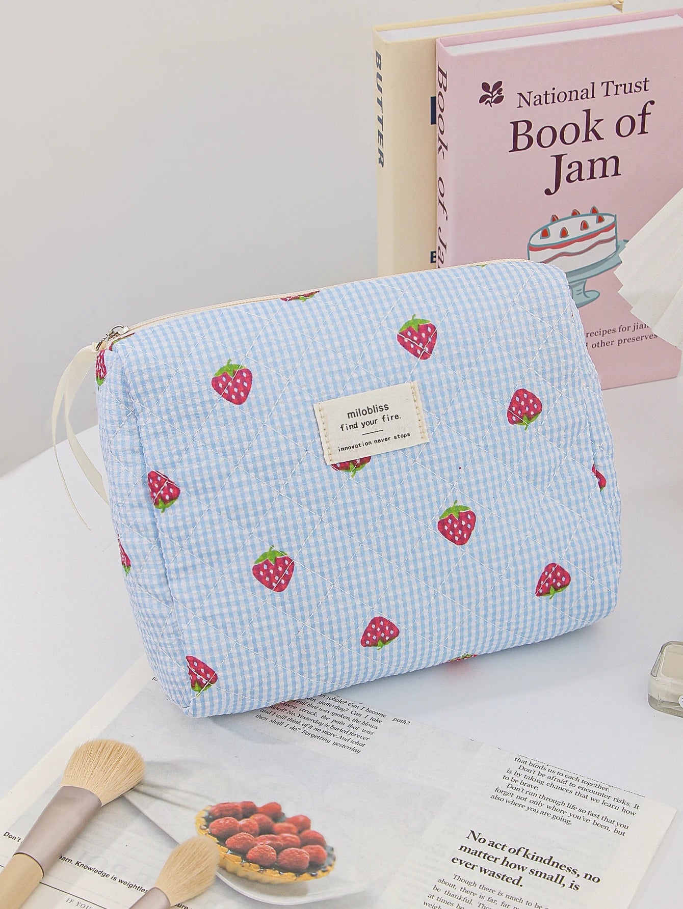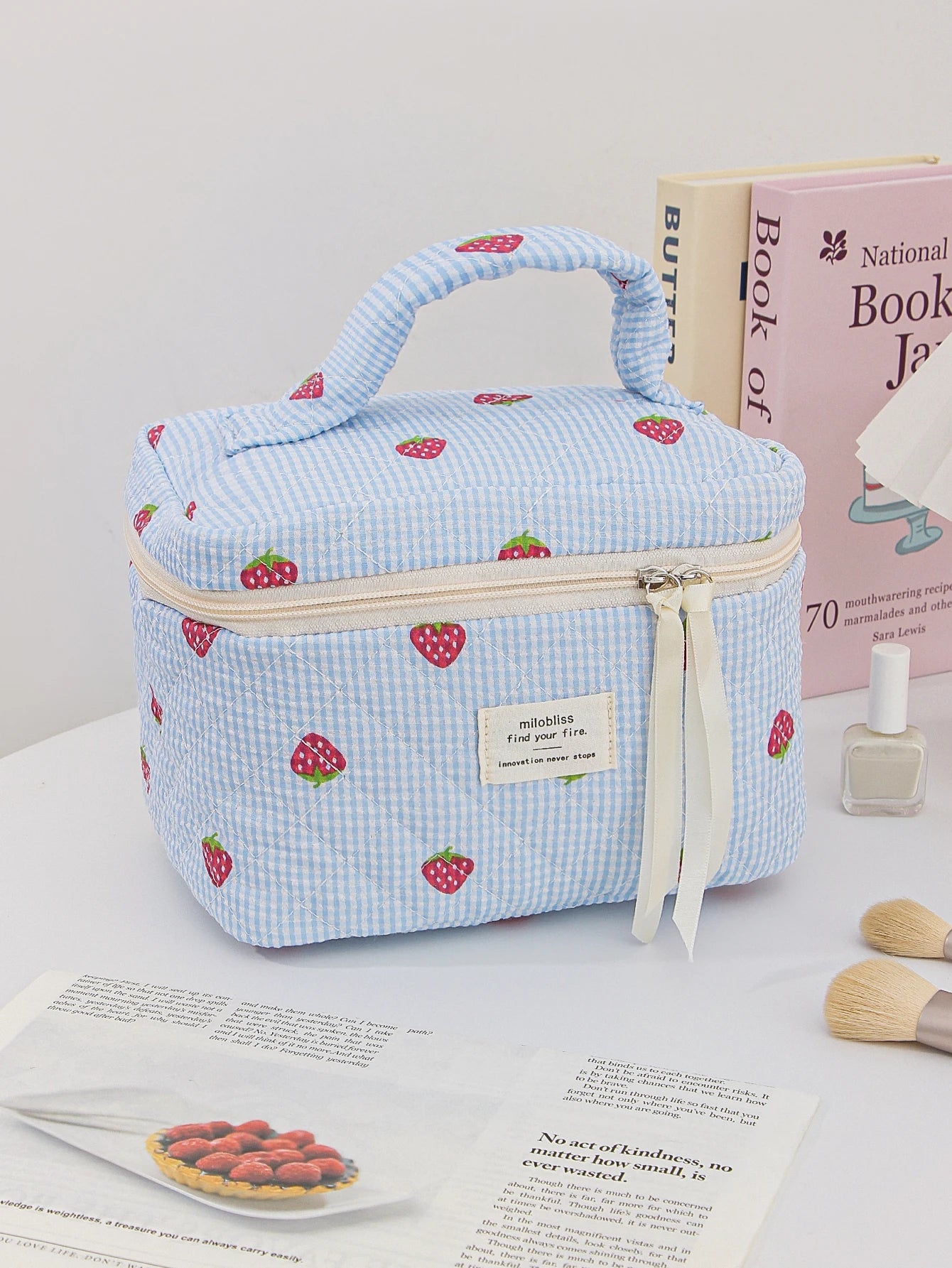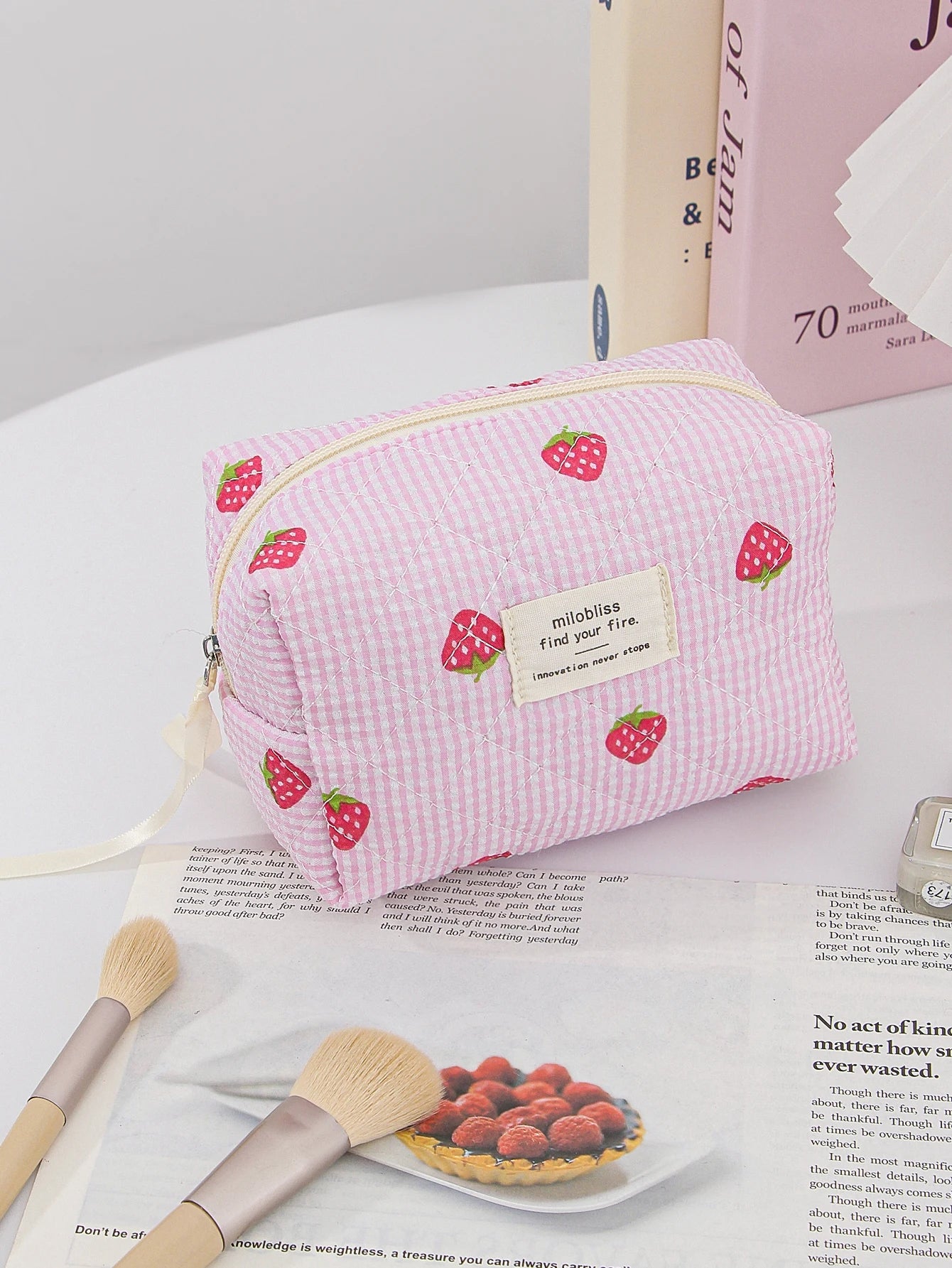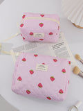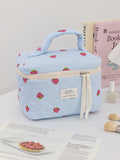 1pc/set Strawberry Quilted Makeup Bag, Travel Makeup Bag, Toiletry Makeup Bag, Portable Makeup Bag, Lightweight Storage Bag