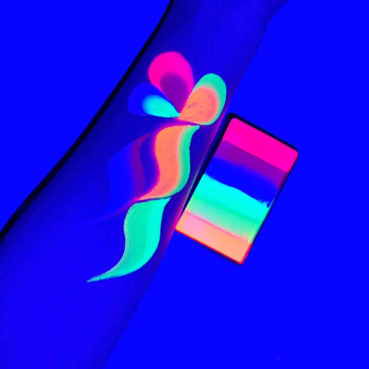 The neon effect of the paint adds a vibrant touch to your makeup, making it perfect for nightclub parties or raves.