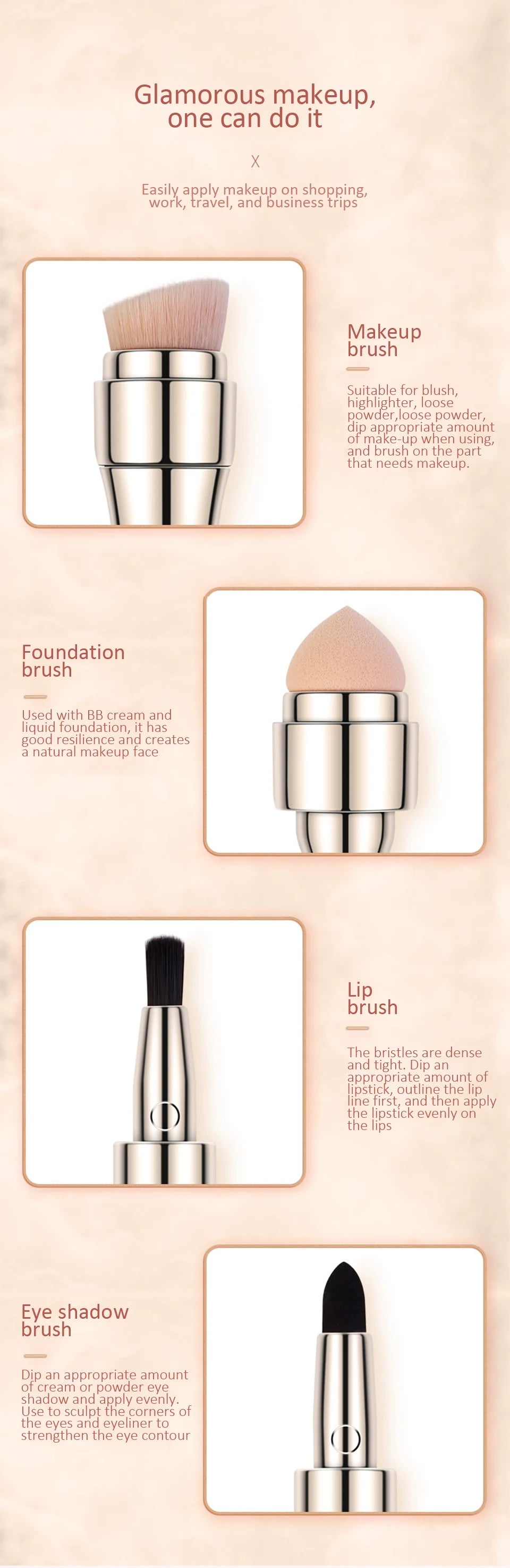 4 in 1 makeup brush set multifunctional eye shadow brush portable foundation brush blush brush lip brush