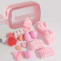 A 16 piece makeup set, a makeup kit, includes a three-piece hairband set, makeup sponges, and cleansing tools, etc.
