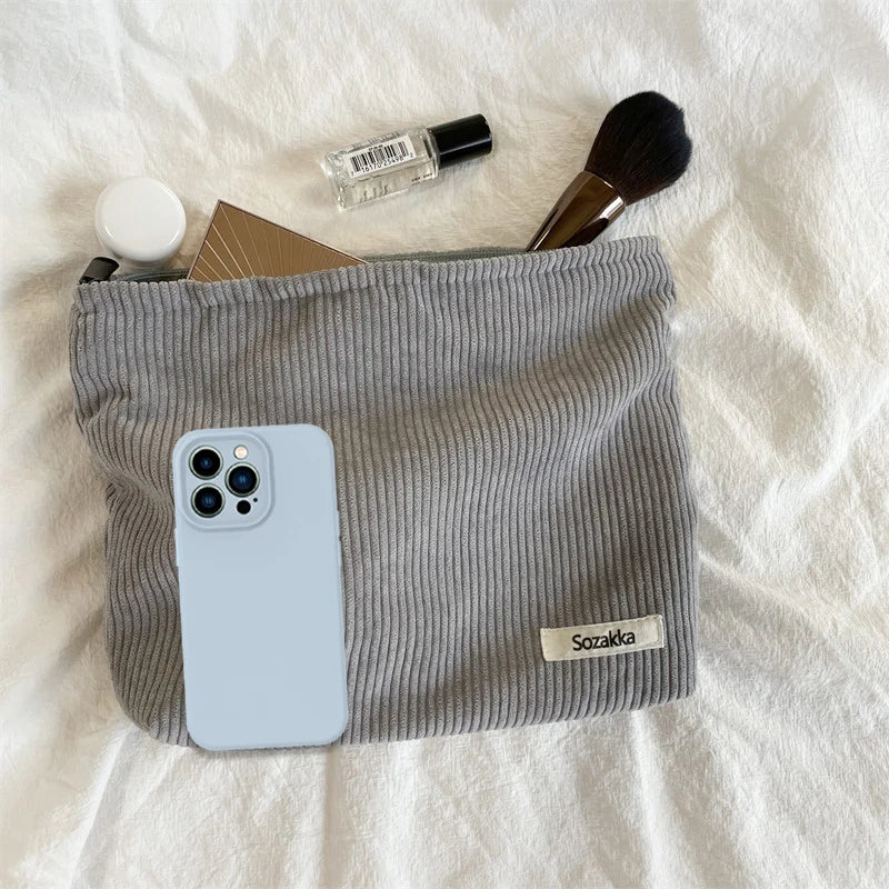 Corduroy Travel Cosmetic Bag Portable Makeup Storage Bag Purses Women Large Capacity Zipper Make Up Organizer Storage Clutch