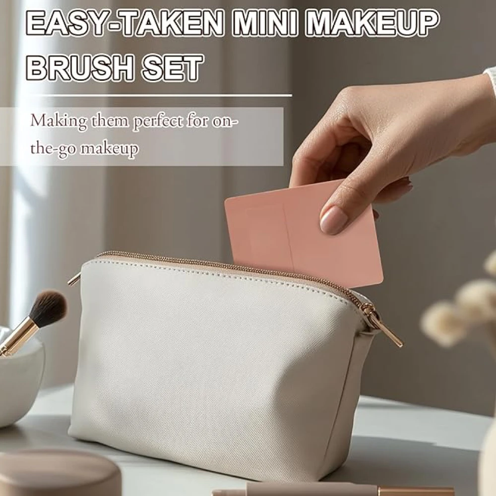 Easy-taken Travel Makeup Brush Set, 5pcs Mini Complete Function Cosmetic Brushes Kit (5pcs with mirror)