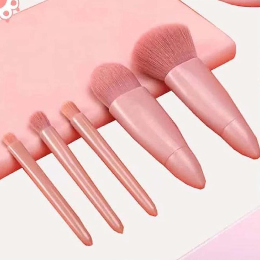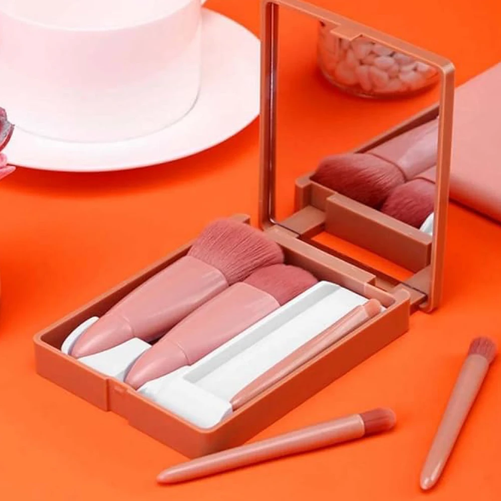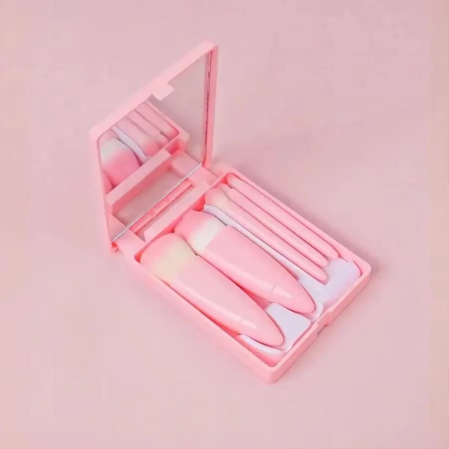 5pcs Mini Complete Function Cosmetic Brushes Kit with Mirror includes: