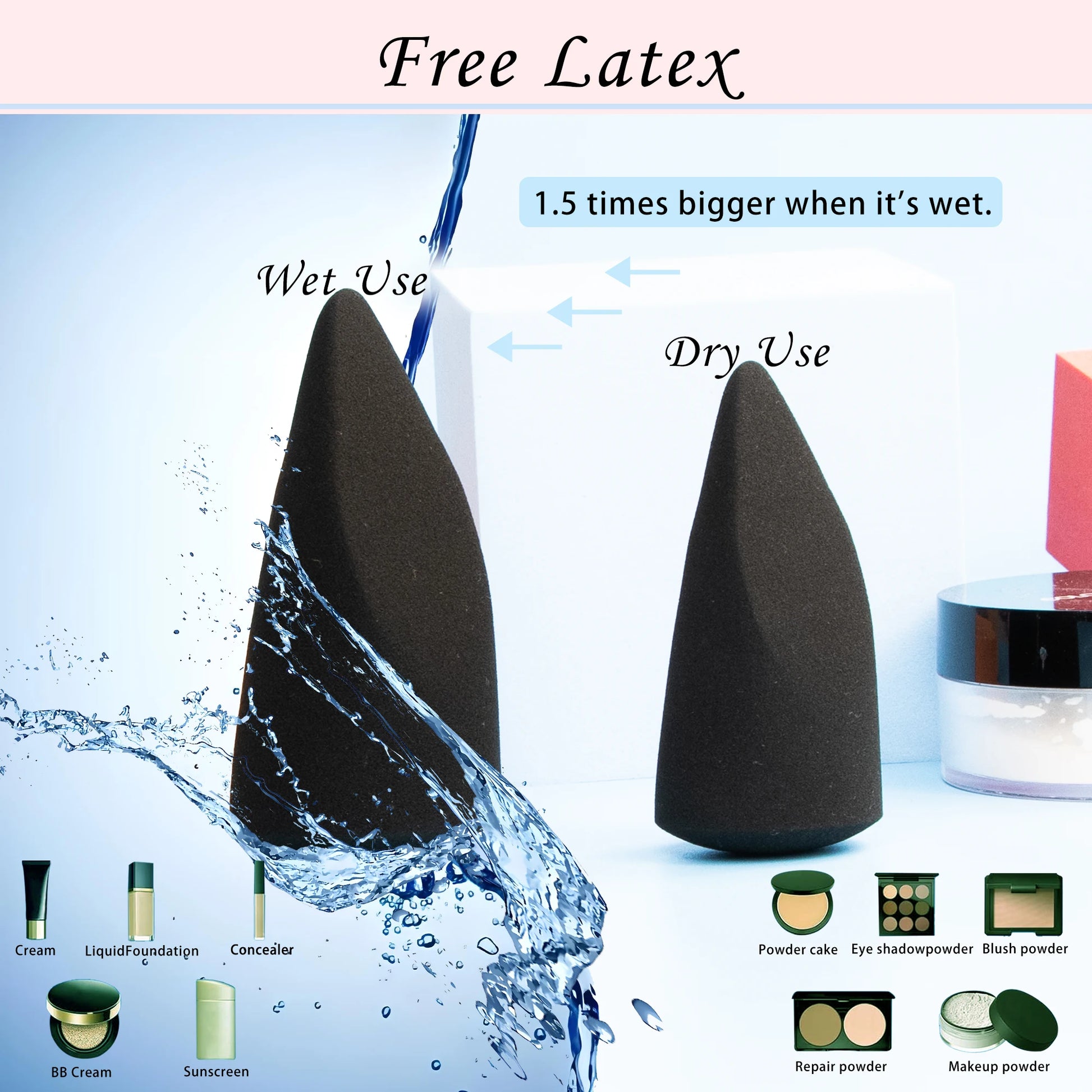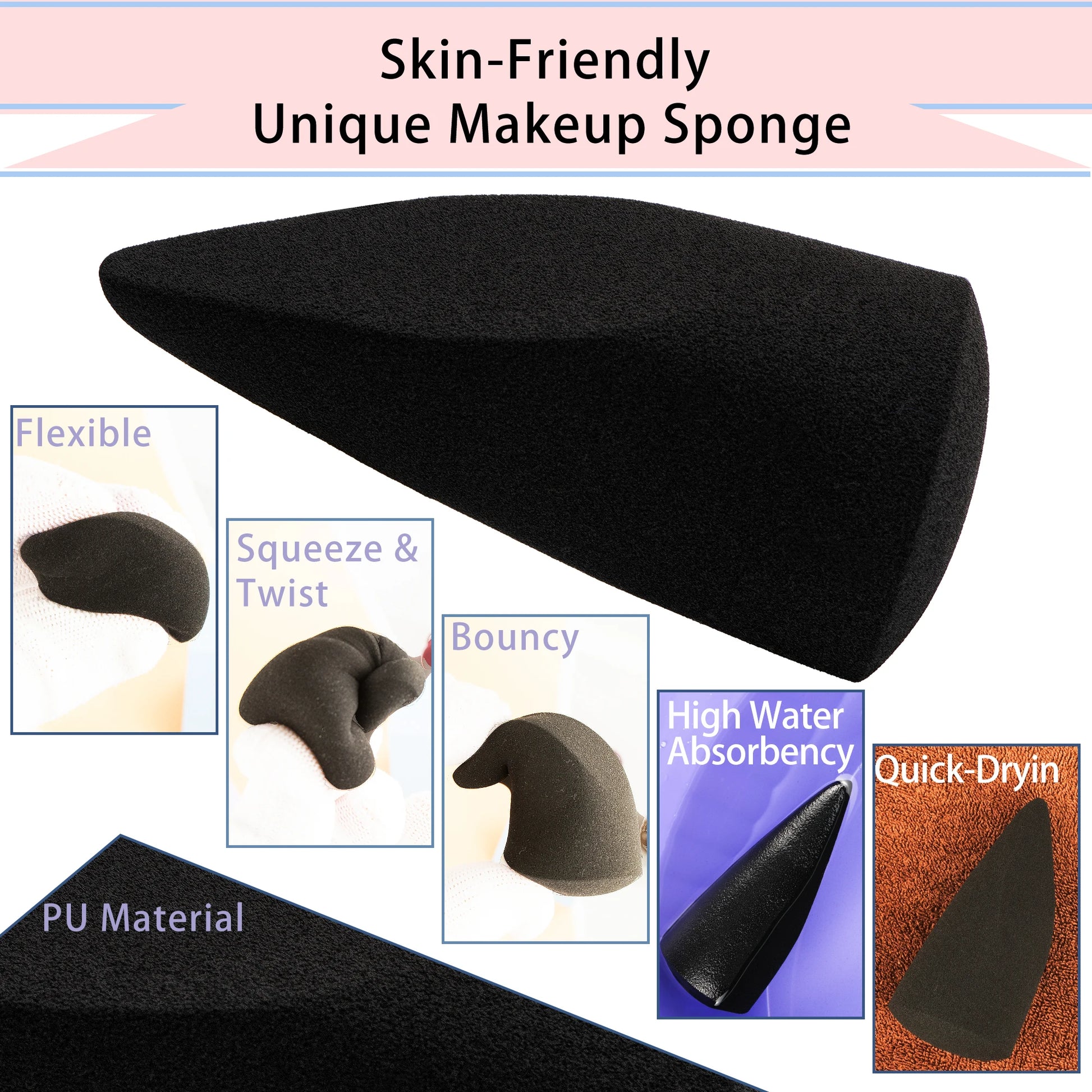 Emvive sponges blend makeup for a streak-free, natural, dewy glow. This foundation sponge provides a marshmallow-like feel, easily keeping shape and rapidly rebounding after heavy squeezing.