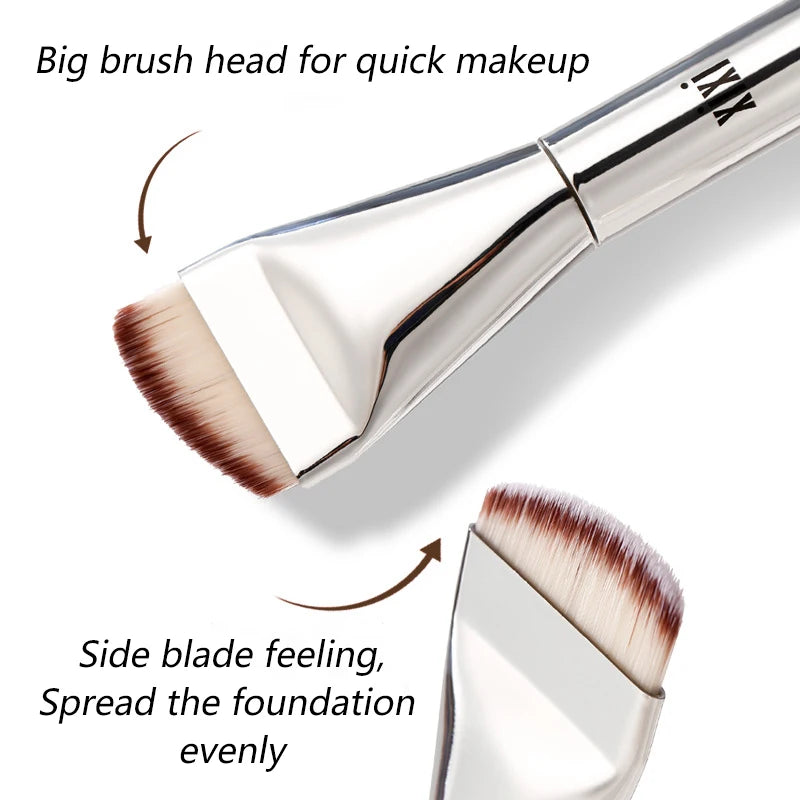 · To use with a foundation brush, squeeze the liquid foundation on the back of your hand, spread the liquid foundation evenly on your face with a foundation brush, and pat the foundation with a powder puff.