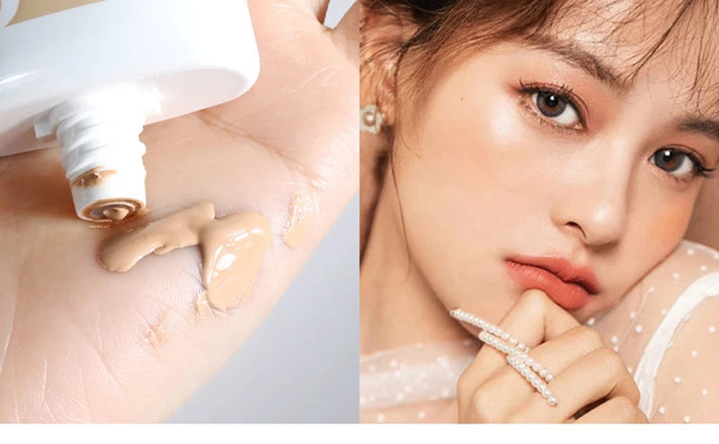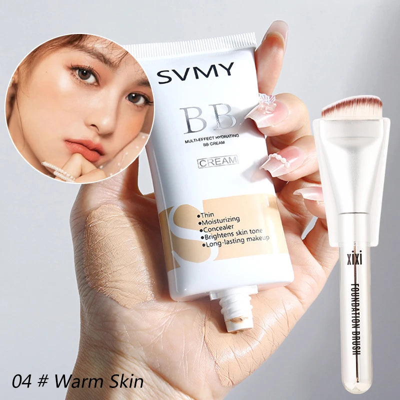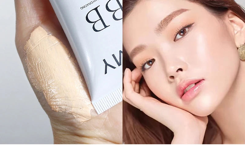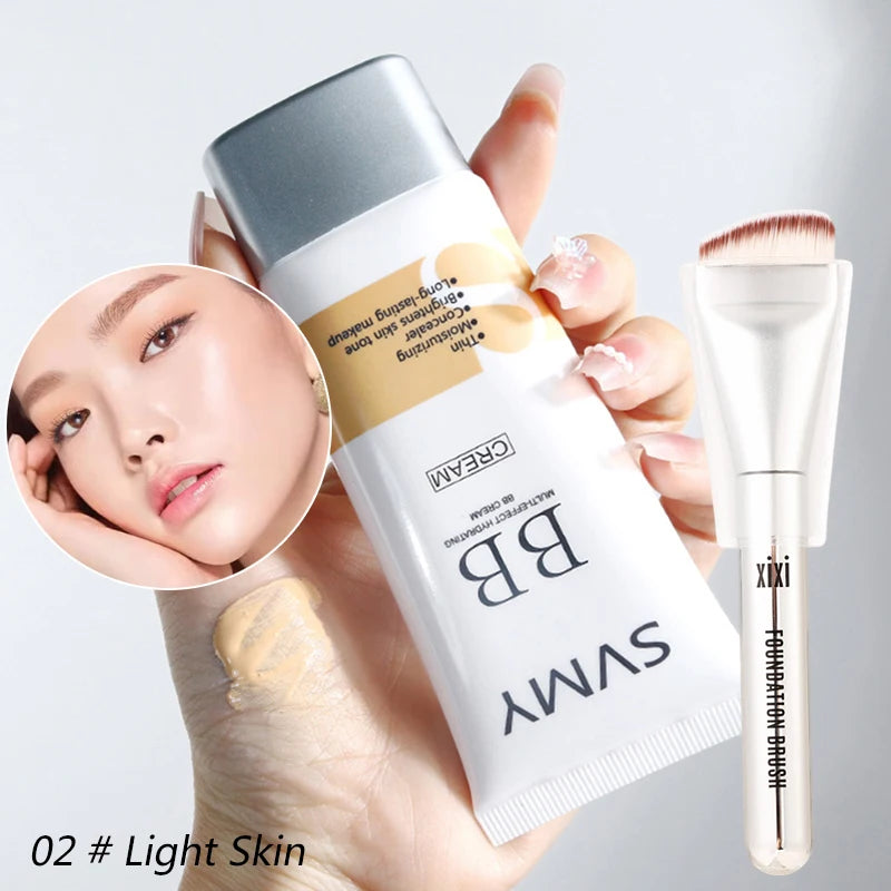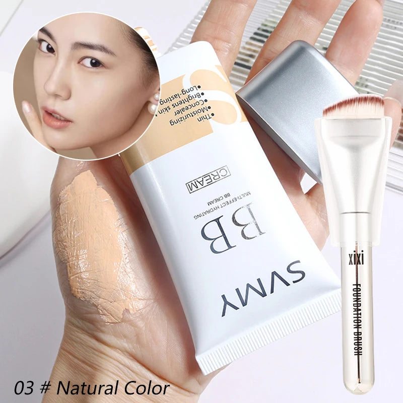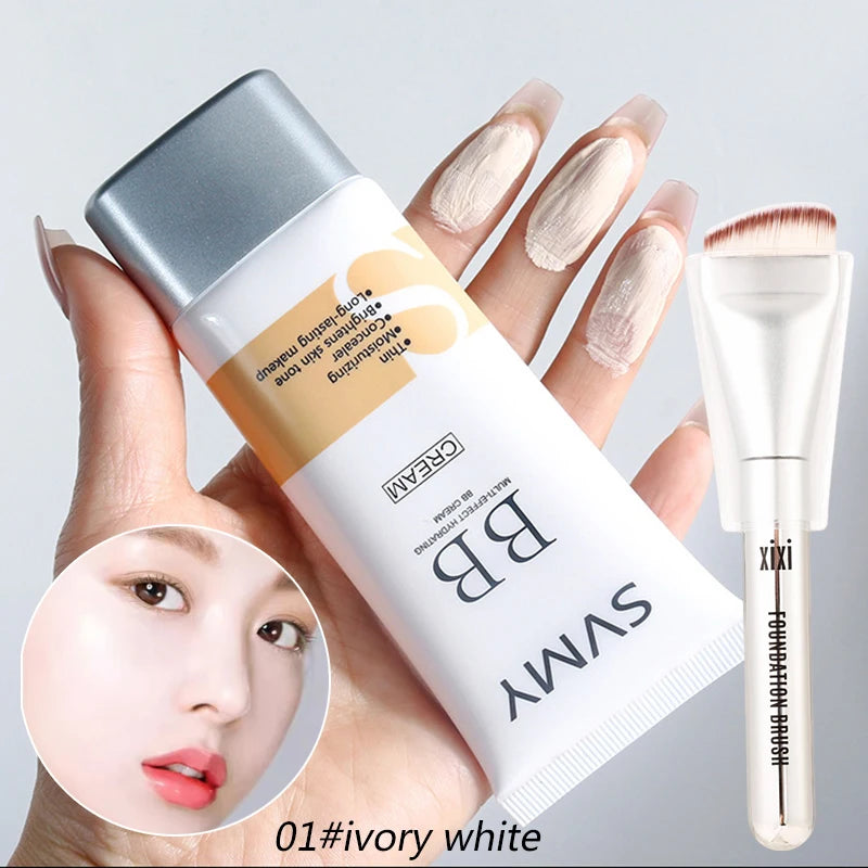 Hydrating Foundation With Brush Korean Makeup Base Waterproof Ivory White Natural Brighten Skin Full Coverage Concealer BB Cream