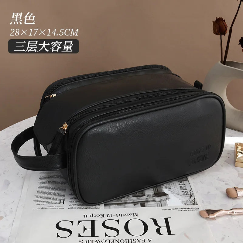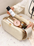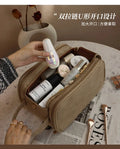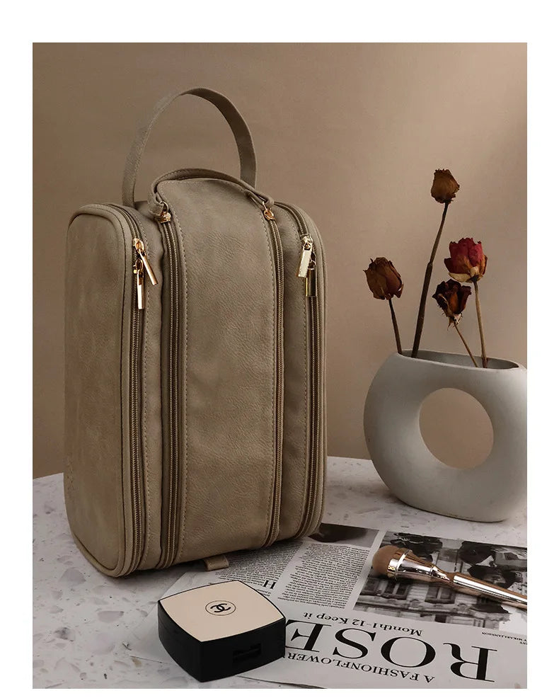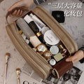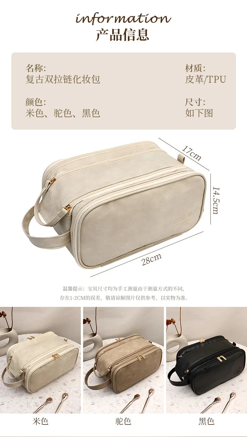 Multifunctional Makeup Bag For Women PU Leather Large Capacity Portable Double Zipper Travel Makeup Brush Toiletries Storage Bag