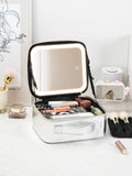 Travel Makeup Bag with LED Lighted Mirror 3 Color Scenarios Adjustable Brightness, with DIY Dividers, Toiletry Makeup Case Gift