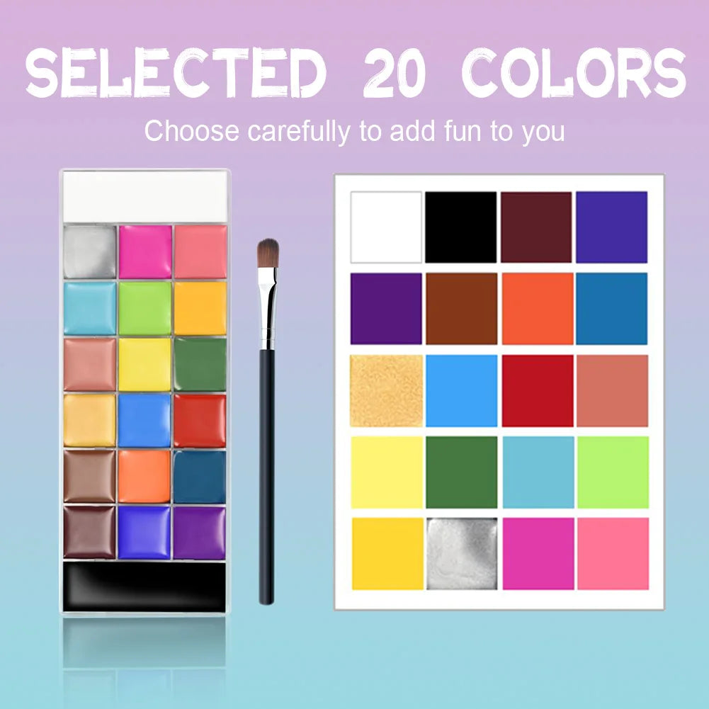 Water soluble makeup palette, water activated eyeliner palette, 20 color face painting eyeliner makeup, art, Halloween, carnival